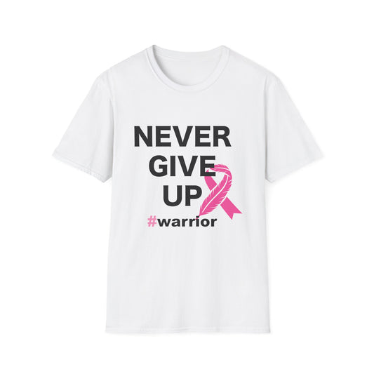 Breast Cancer Awareness: "Never Give Up" Unisex Softstyle T-Shirt