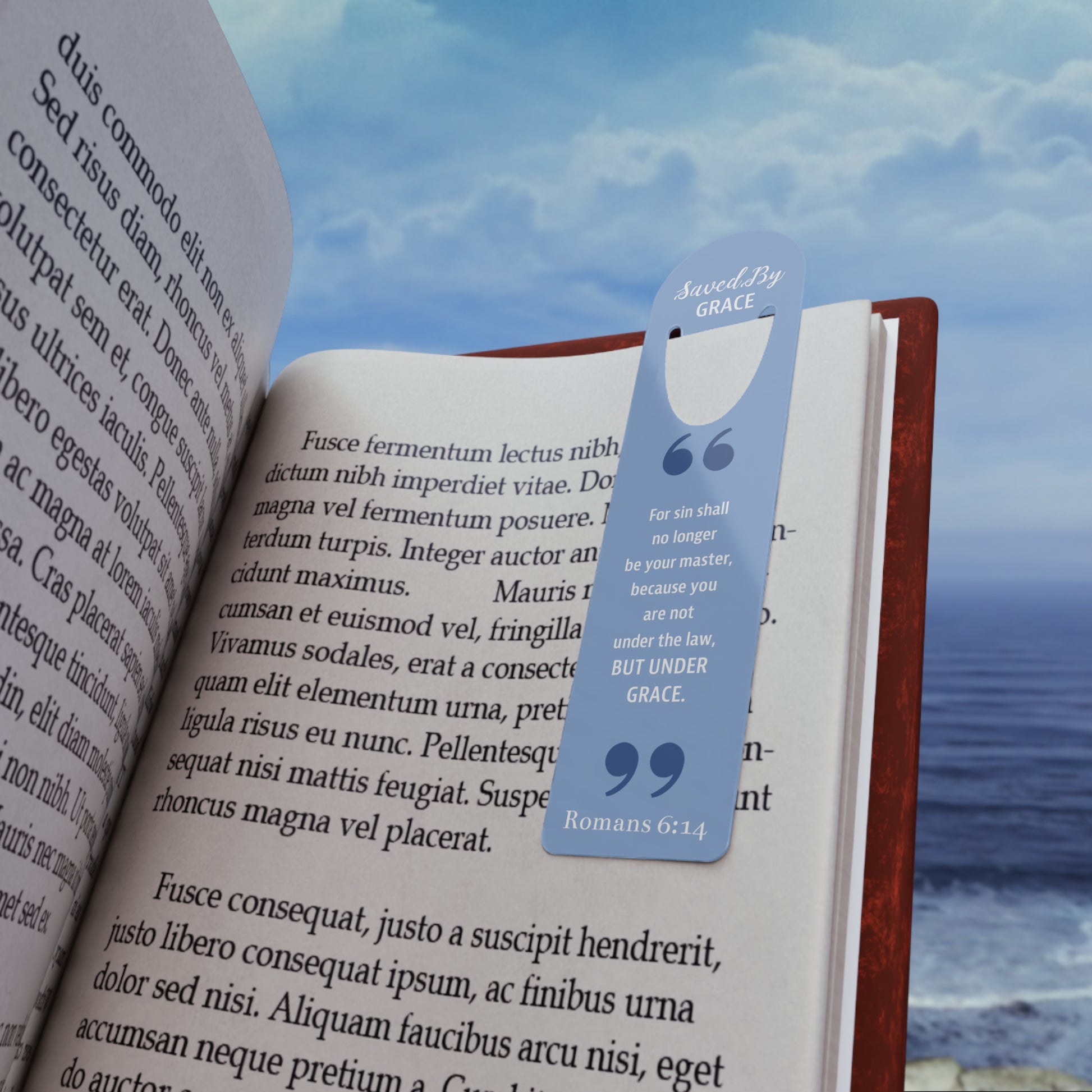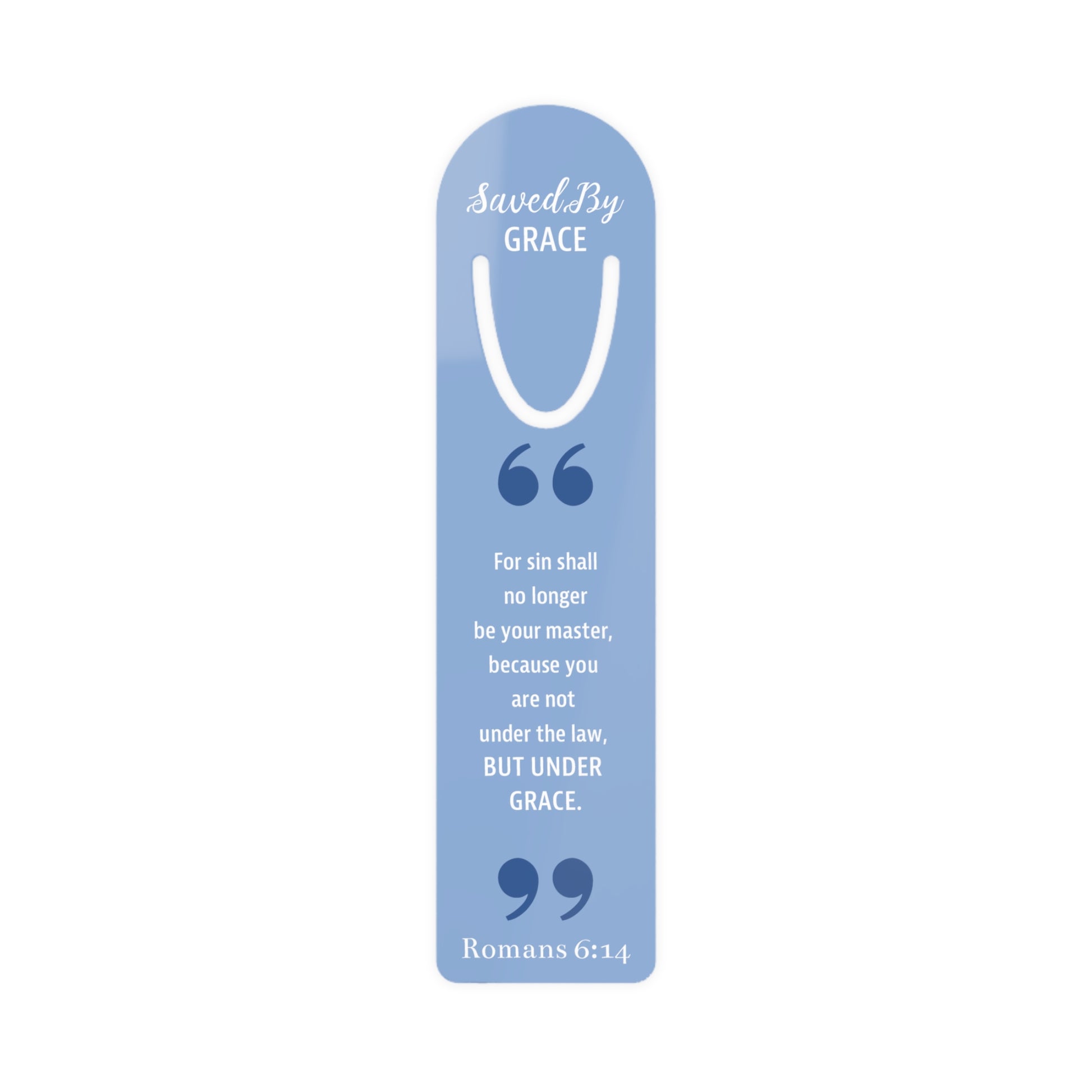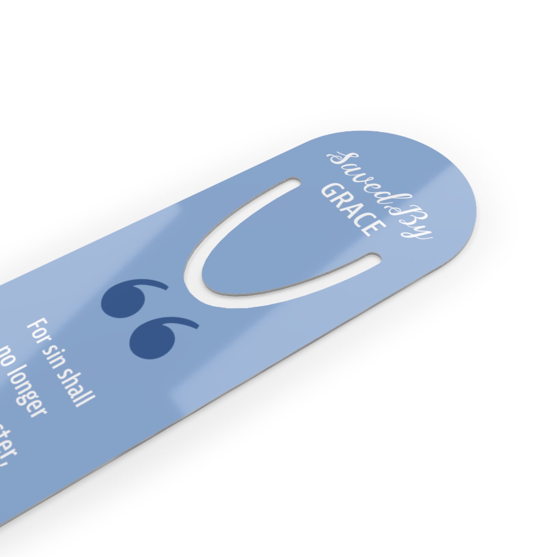 This one's for our bookworms out there - introducing the Faith By Color bookmark. The artwork embodies the principle of "Saved By GRACE" and reflects the scriptural reading of Romans 6:14. Made with robust aluminum, features top slot that holds single pages in place.