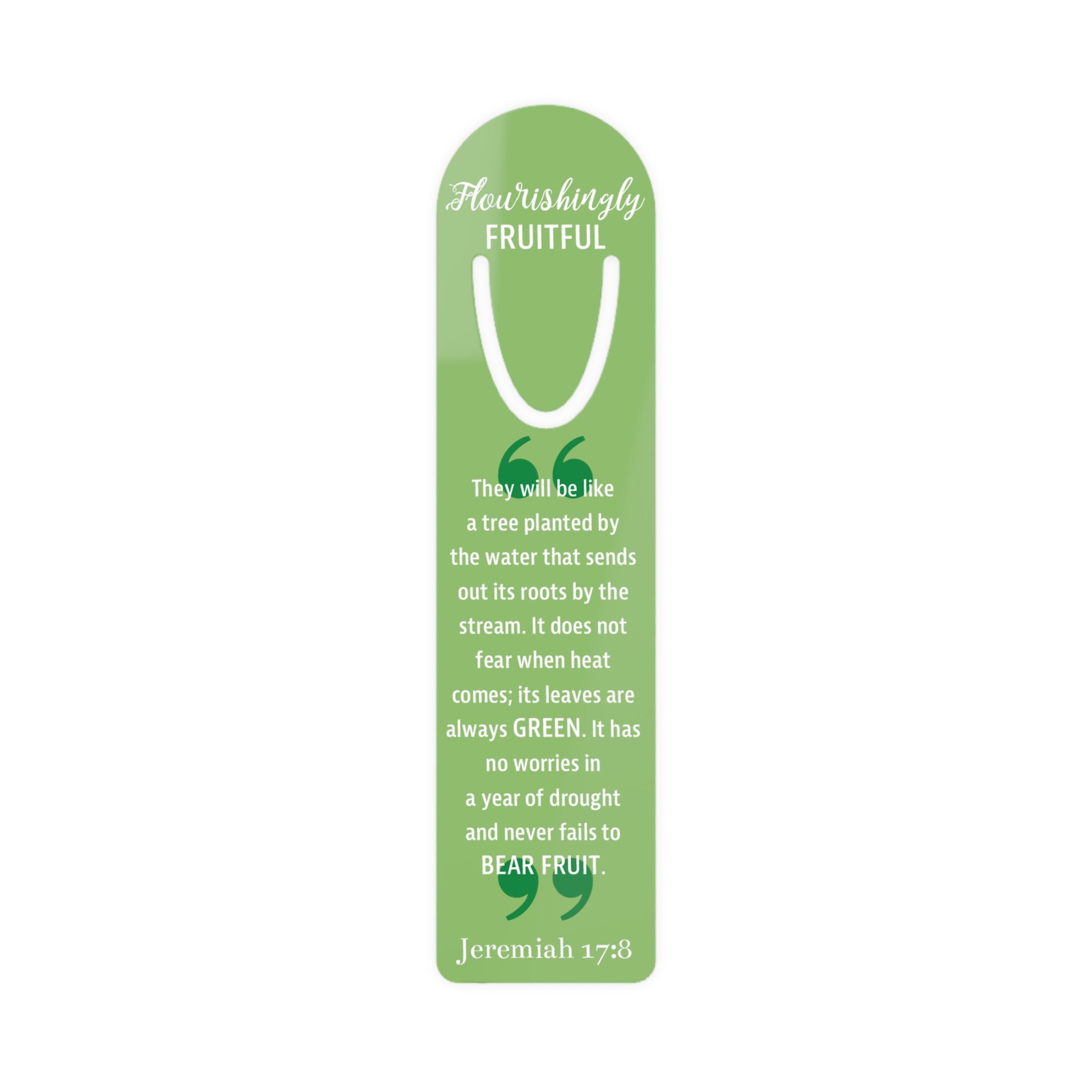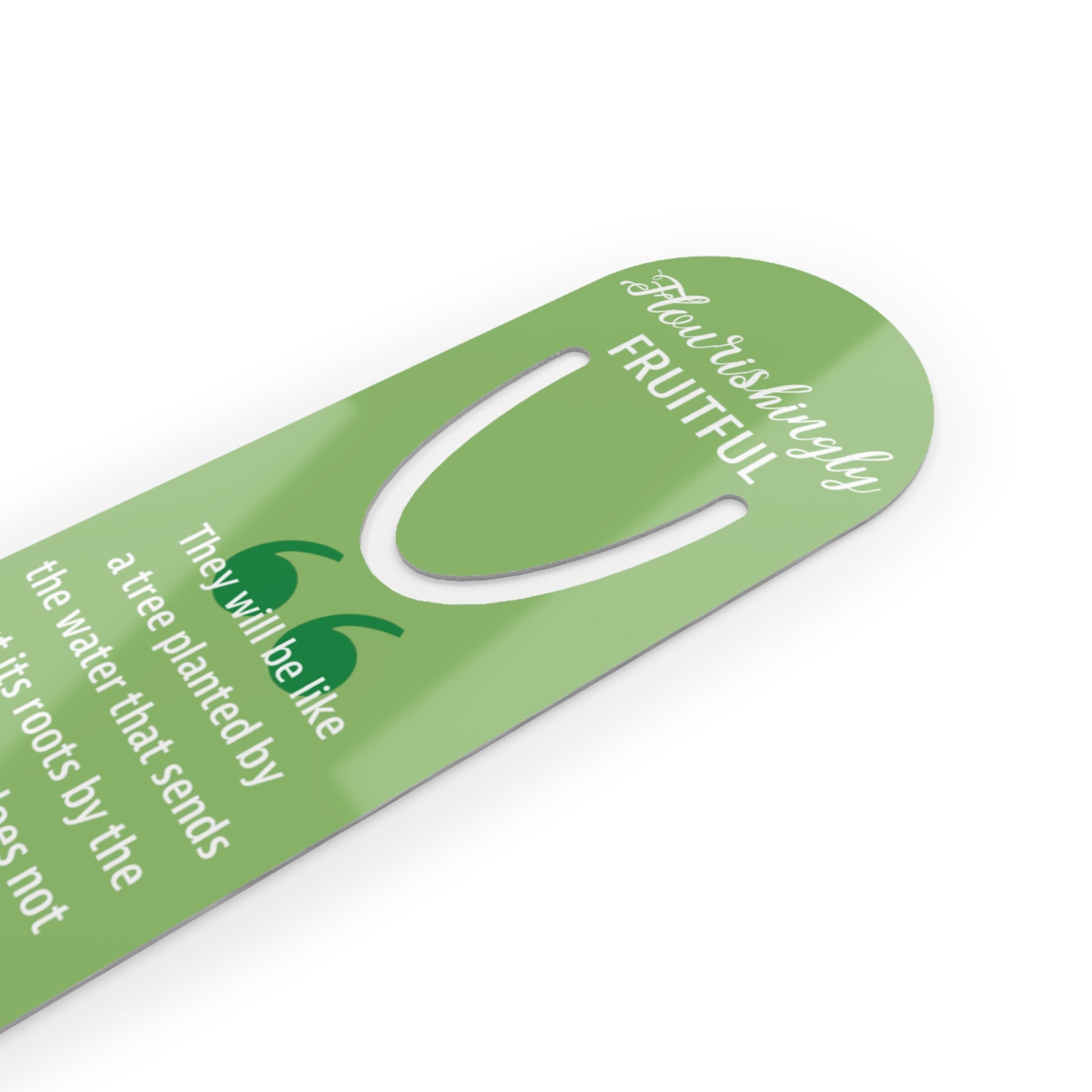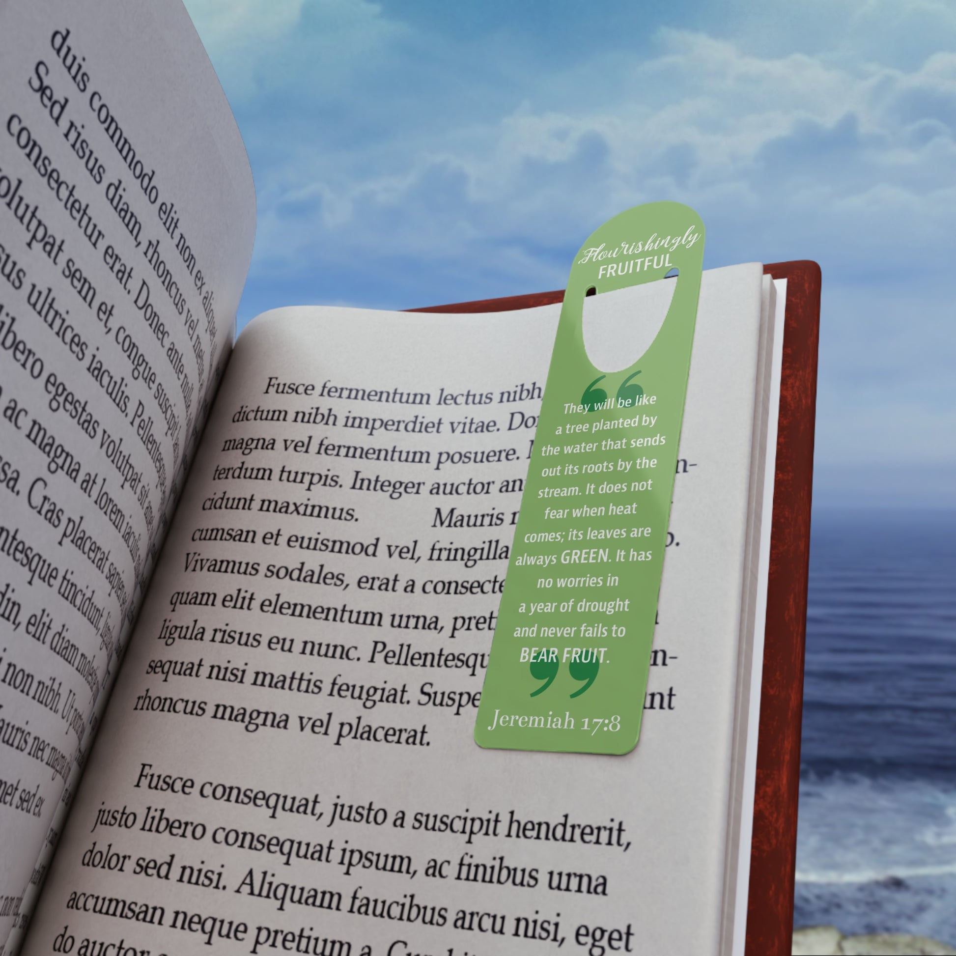 This one's for our bookworms out there - introducing the Faith By Color bookmark. The artwork embodies the principle of "Flourishingly FRUITFUL" and reflects the scriptural reading of Jeremiah 17:8. Made with robust aluminum, features top slot that holds single pages in place.