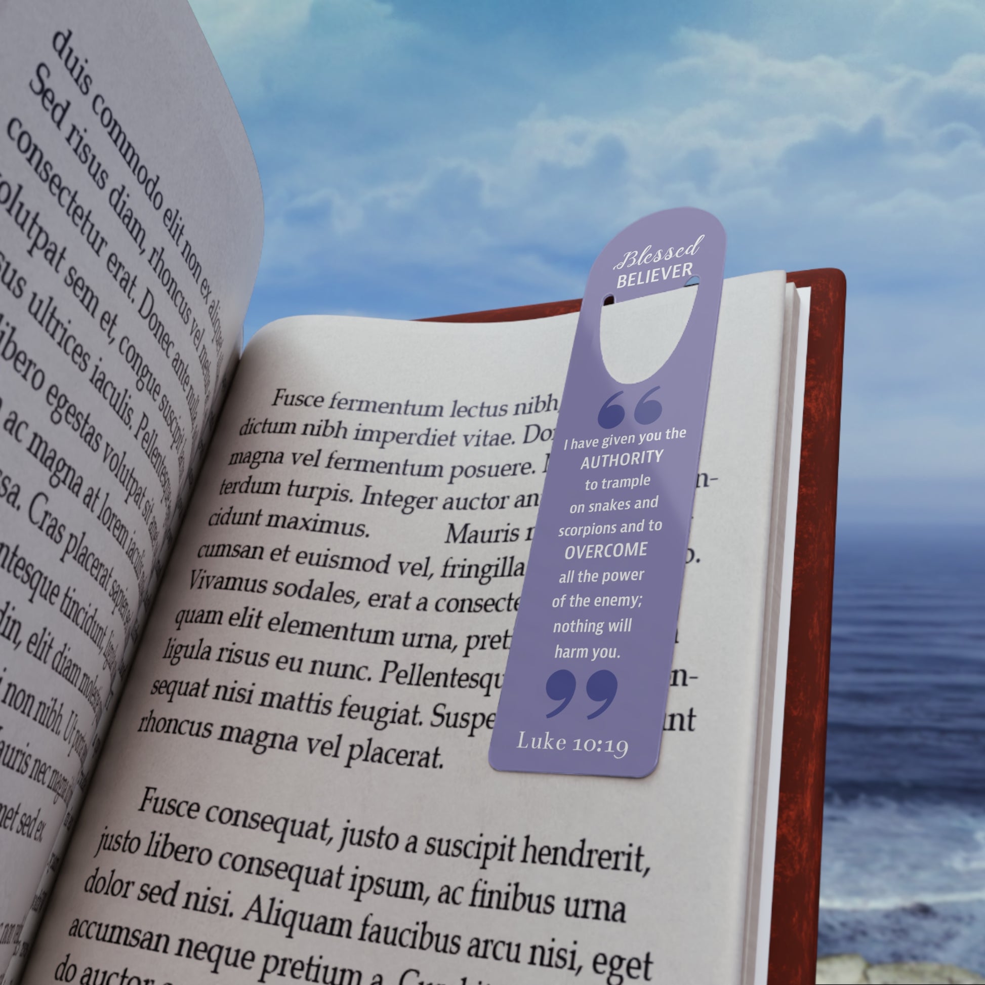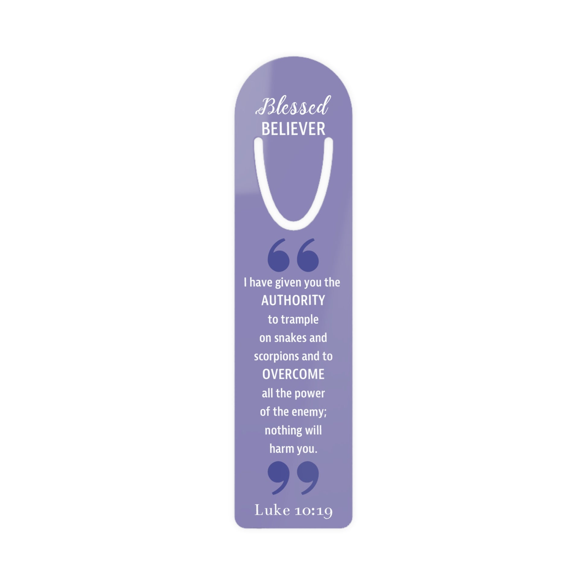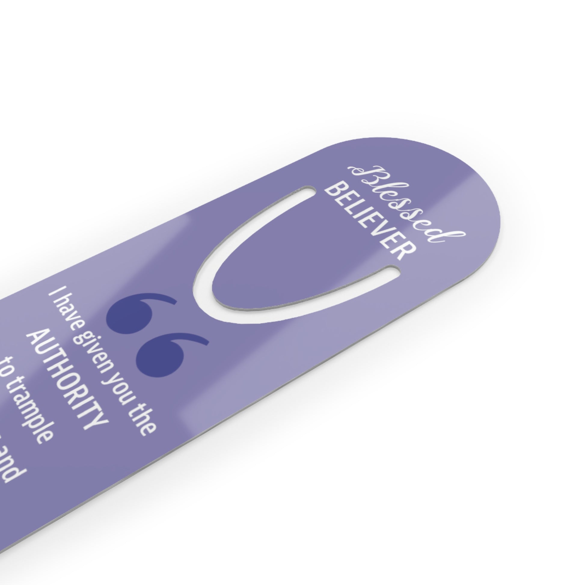 This one's for our bookworms out there - introducing the Faith By Color bookmark. The artwork embodies the principle of "Blessed BELIEVER" and reflects the scriptural reading of Luke 10:19. Made with robust aluminum, features top slot that holds single pages in place.