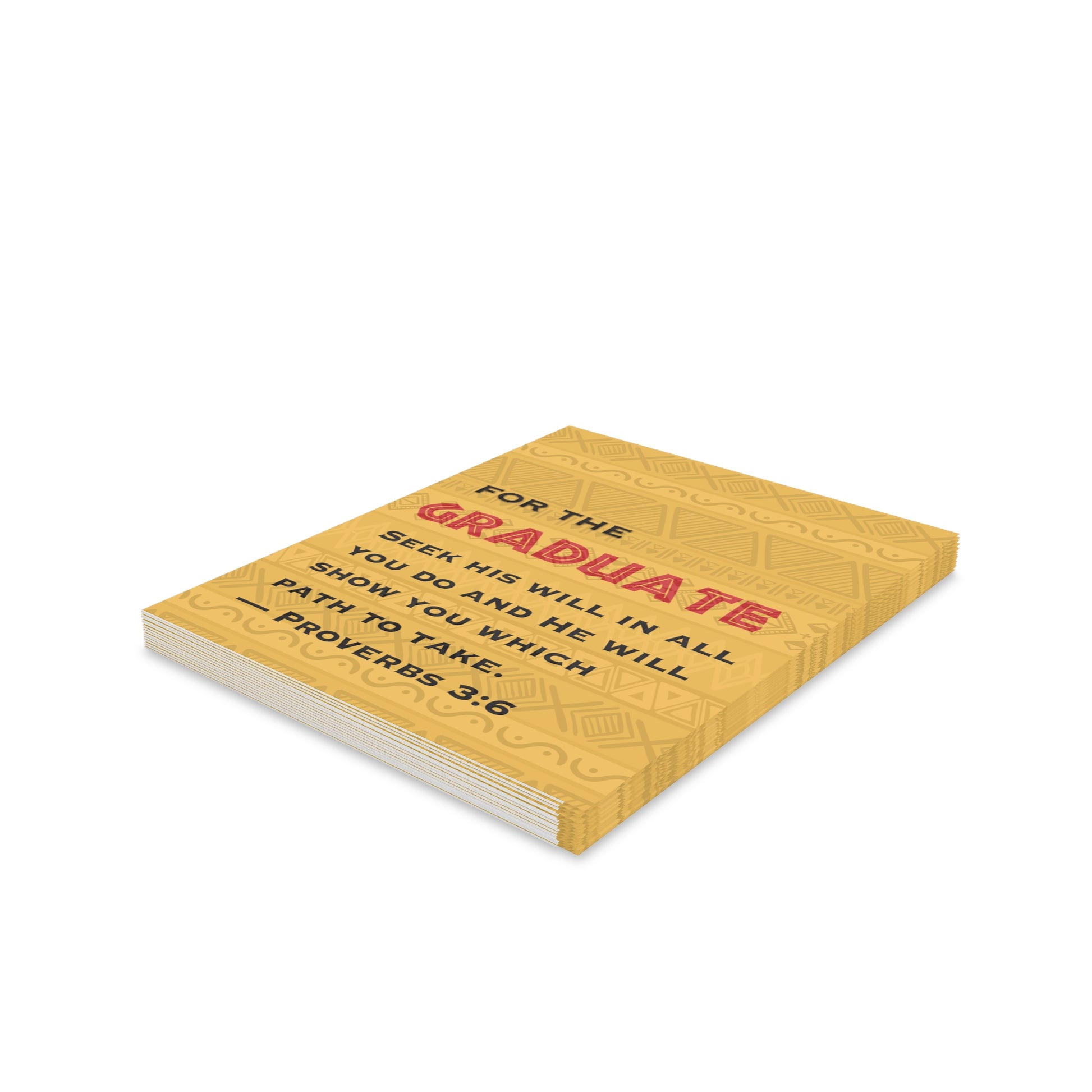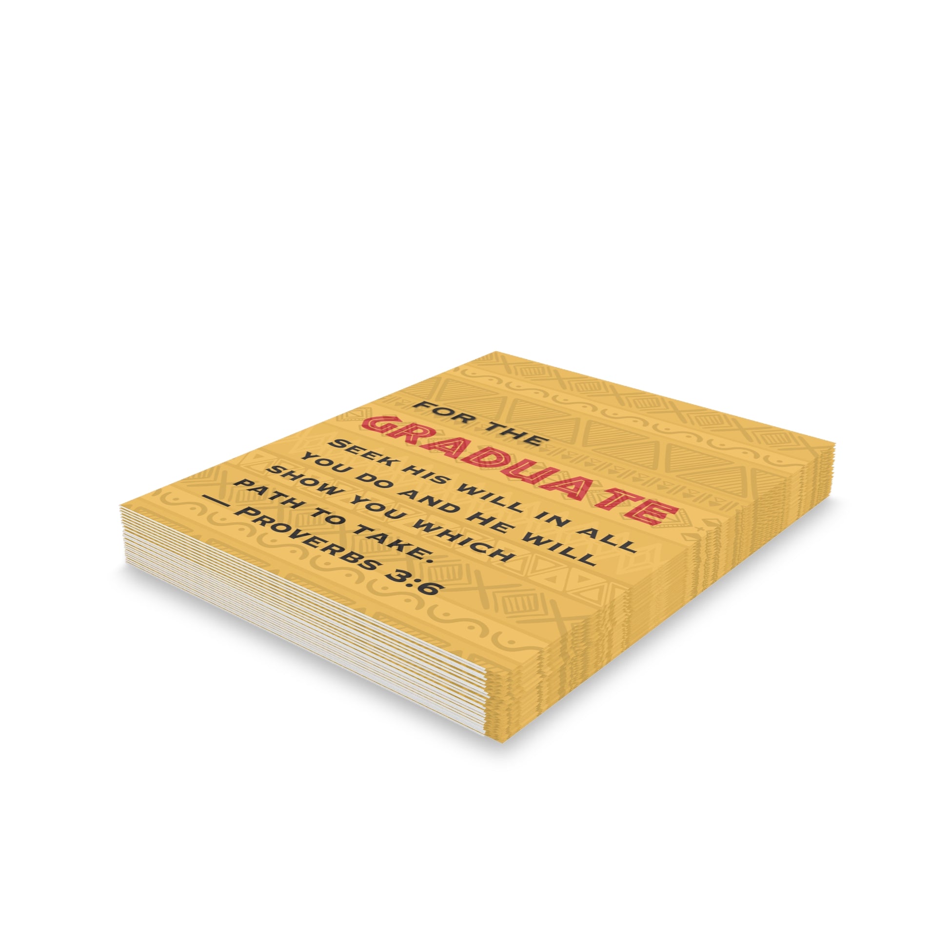 Celebrate the men who are graduating this season. Printed on uncoated cardstock. Available in 8-packs, 16-packs, and 24-packs - each pack comes with matching white envelopes. Inside Message: "There are endless possibilities in your future. Believe in who He has called you to be and have faith for the journey ahead. Congratulations!"