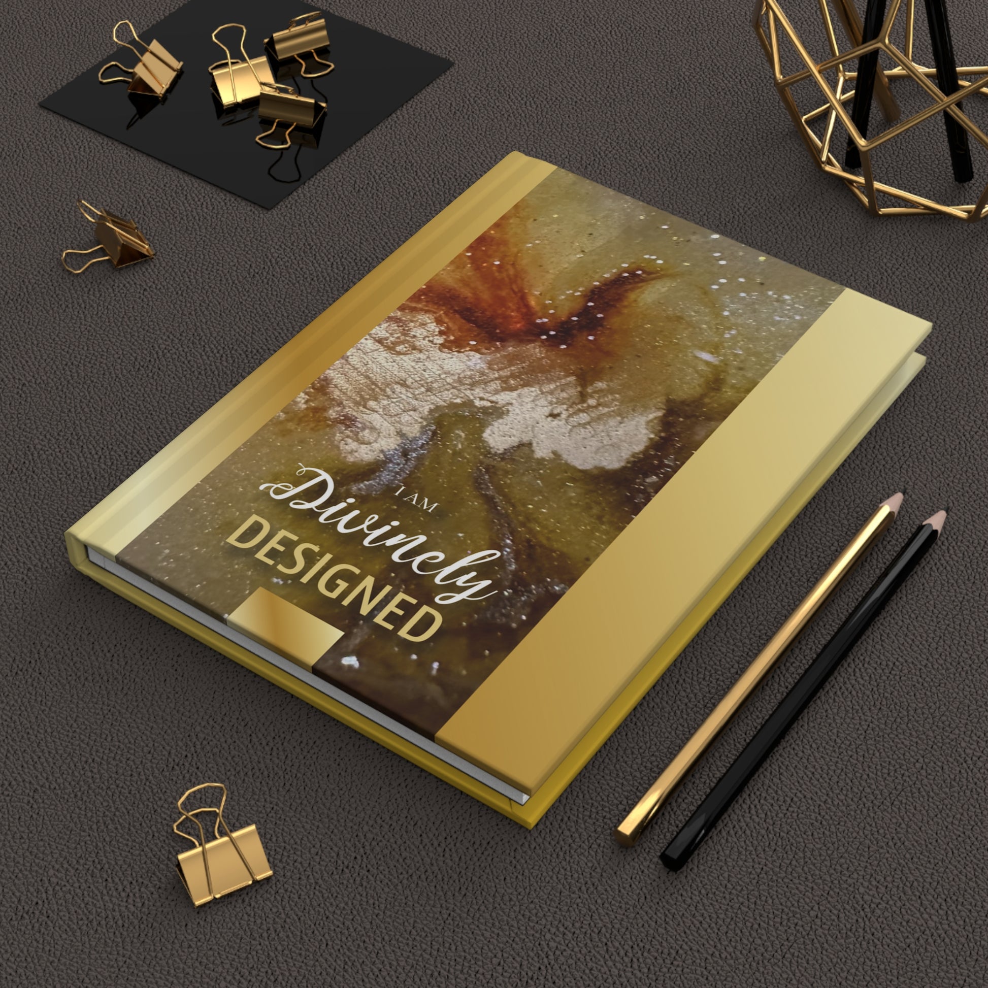 - Wraparound printed cover adorned in shades of gold and original photography